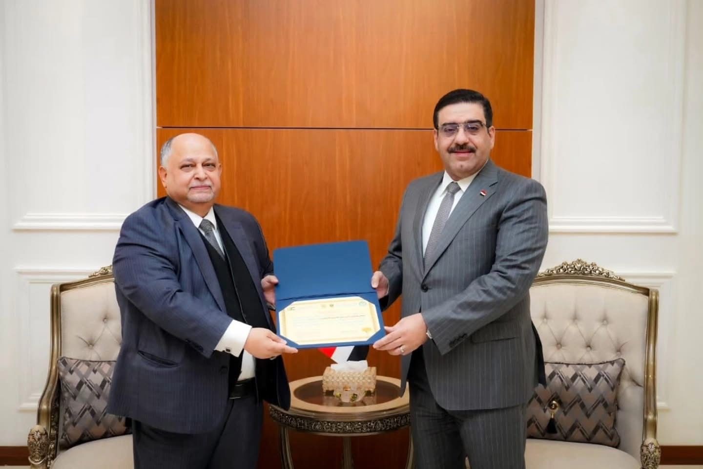 استقبل معالي الدكتور اثير داود الغريري وزير التجارة في مكتبه السيد إبراهيم المسعودي البغدادي رئيس المجلس الاقتصادي العراقي وحضر الاجتماع السيد رياض فاخر الهاشمي مدير عام دائرة العلاقات الاقتصادية الخارجية في وزارة التجارة والسيد حيدر الربيعي نائب المدير التنفيذي في المجلس الاقتصادي العراقي وفي بداية الاجتماع اثنى معالي الوزير على الدور الإيجابي للسيد رئيس المجلس الاقتصادي في تنظيم منتدى #الاستثماروالاعمال_العراقي_الاوزبكي الاول الذي عقد في بغداد بفندق الموفنبيك في (23/12/2025) ، وكذلك المنتدى الثاني الذي عقد في طشقند وسمرقند للفترة (12-16/1/2026) مثمناً جهود المجلس في فتح قنوات التواصل ومد جسور التعاون الاقتصادي البناء ، وبدوره فقد شكر السيد إبراهيم المسعودي البغدادي مساعي معالي وزير التجارة لدعم جهود المجلس الاقتصادي العراقي في توسيع افاق العمل والتعاون المشترك مع الدول التي لاتوجد معها علاقات اقتصادية حيث ترأس السيد وزير التجارة الوفد العراقي الرسمي الذي ضم 152 شخص (144 سيدة ورجل اعمال و 8 شخصيات من الجانب الحكومي) وقد توجه الوفد الى اوزبكستان بطائرة خاصة والتقى نظيره الاوزبكي